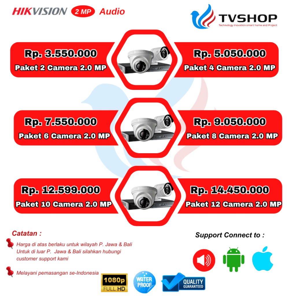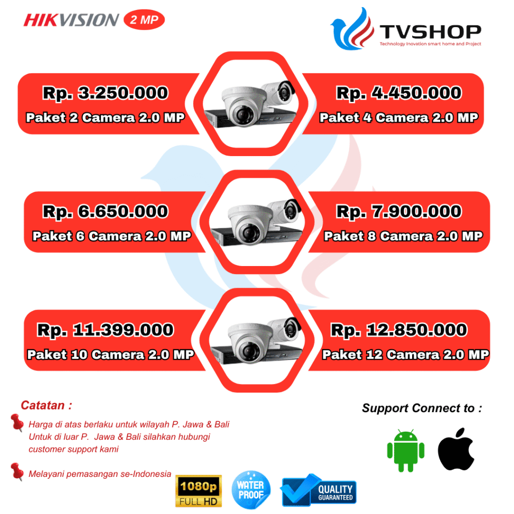 Kami adalah distributor Hikvision No 1 dan terbesar di Indonesia. Percayakan pemasangan CCTV Anda kepada kami, dan kami akan membantu Anda memilih solusi terbaik sesuai dengan kebutuhan keamanan Anda. Pasang CCTV dari kami memungkinkan Anda untuk cctv pantau hp dengan mudah melalui aplikasi Hikvision.